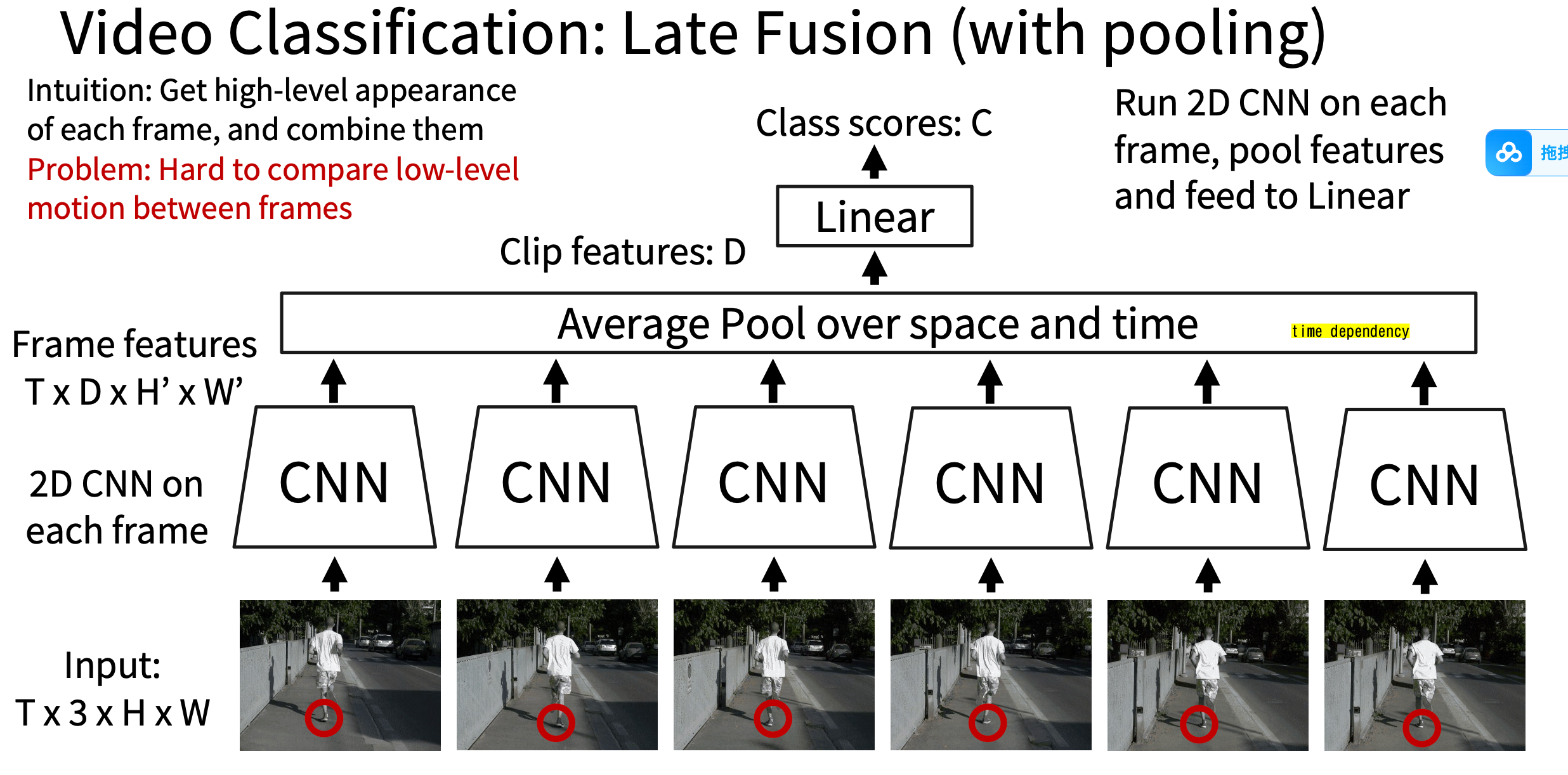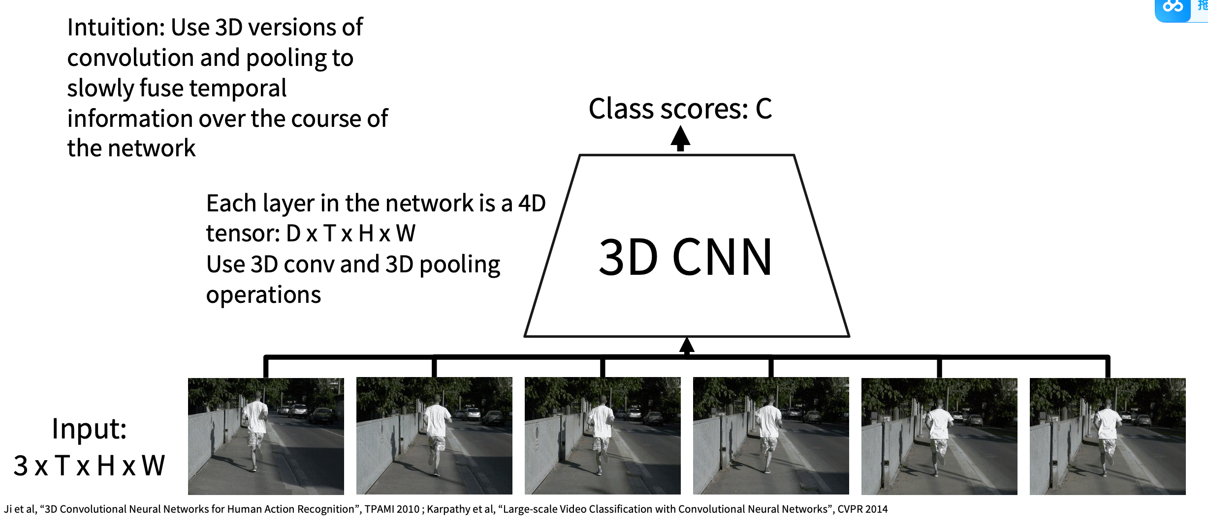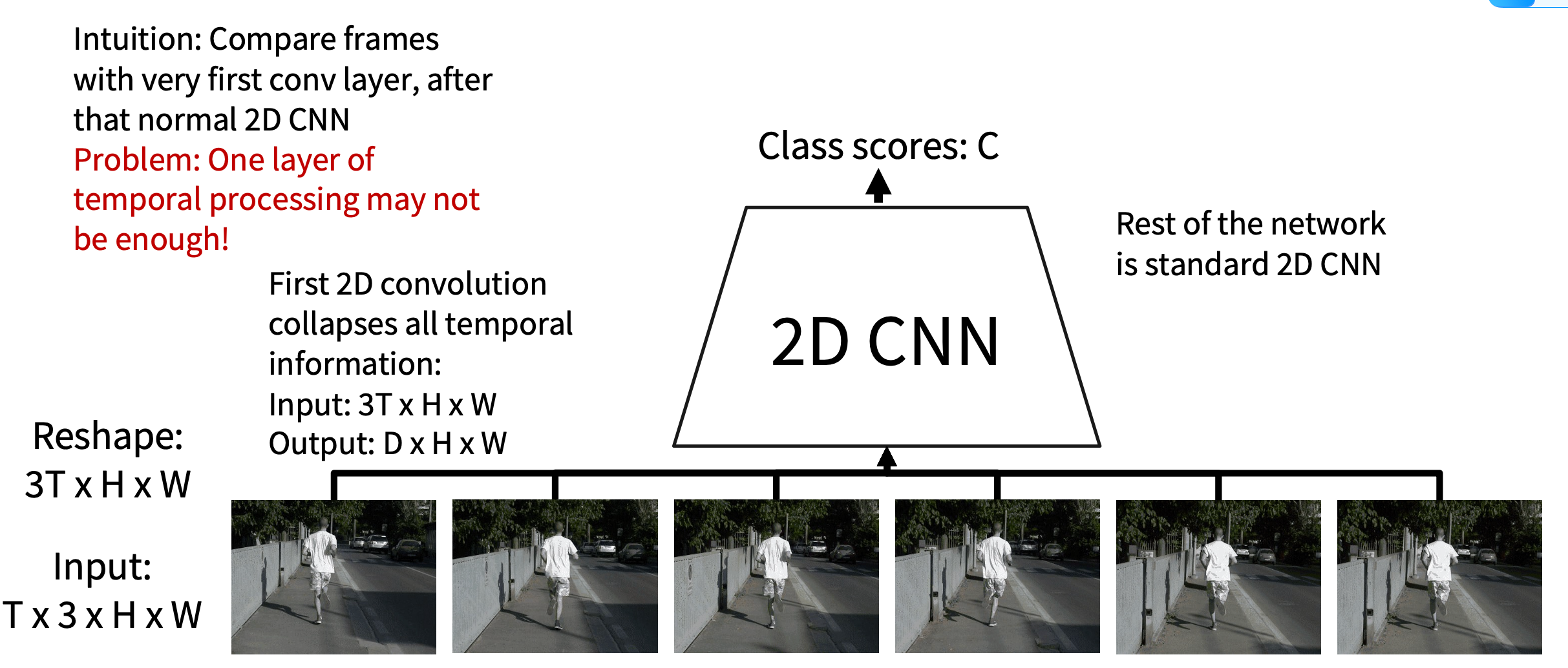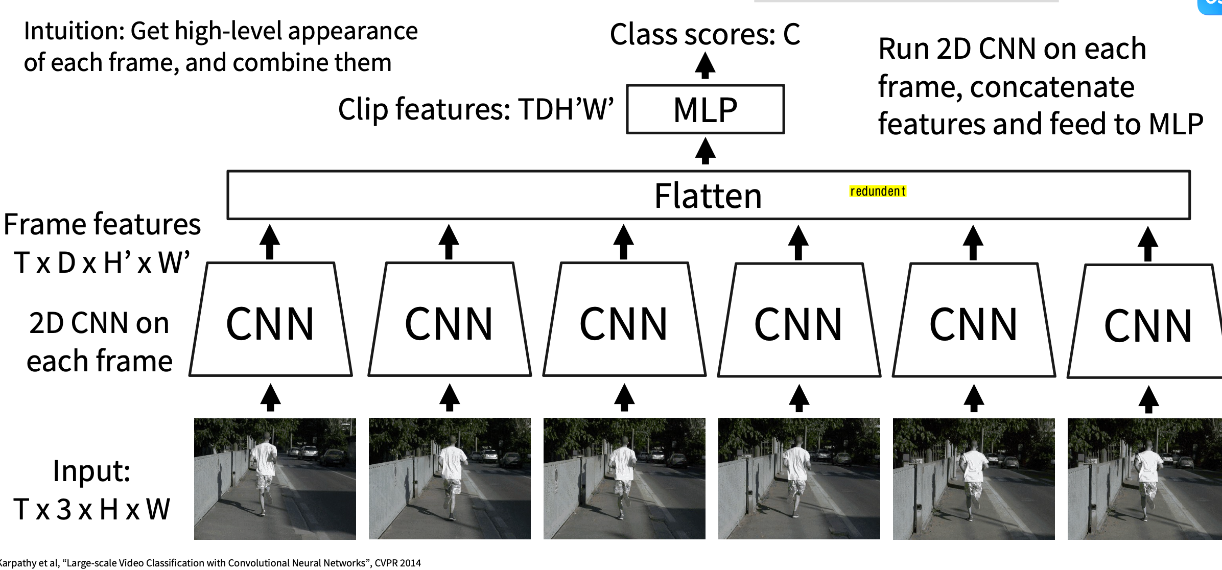 Idea2: Train normal 2D CNN to classify video frames independently(Often a very strong baseline for video classification)